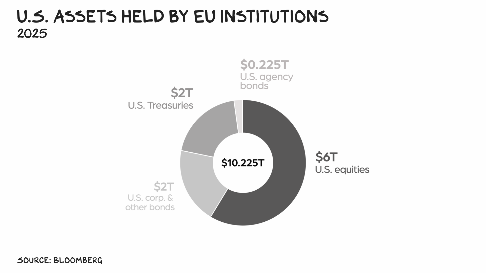 In economic terms, Quantum of Stupid is already a flop. After announcing a 10% tariff on goods from eight European nations that immediately rallied around Denmark, the U.S. got a sneak preview of coming attractions. Denmark’s largest pension fund announced plans to sell off $100 million in Treasuries (it denied the move was political). Pimco’s chief investment officer told the Financial Times it was pivoting away from U.S. assets because of Trump’s “unpredictable” policies. Europe holds 40% of foreign U.S. Treasuries. As Ray Dalio said, “You could easily imagine it could simply become unpopular to buy or hold U.S. debt.” True. You could also imagine the EU weaponizing capital. “For all its military and economic strength, the U.S. has one key weakness: It relies on others to pay its bills via large external deficits,” said Deutsche Bank’s George Saravelos, adding that it’s “not clear why Europeans would be as willing to play this part.”
