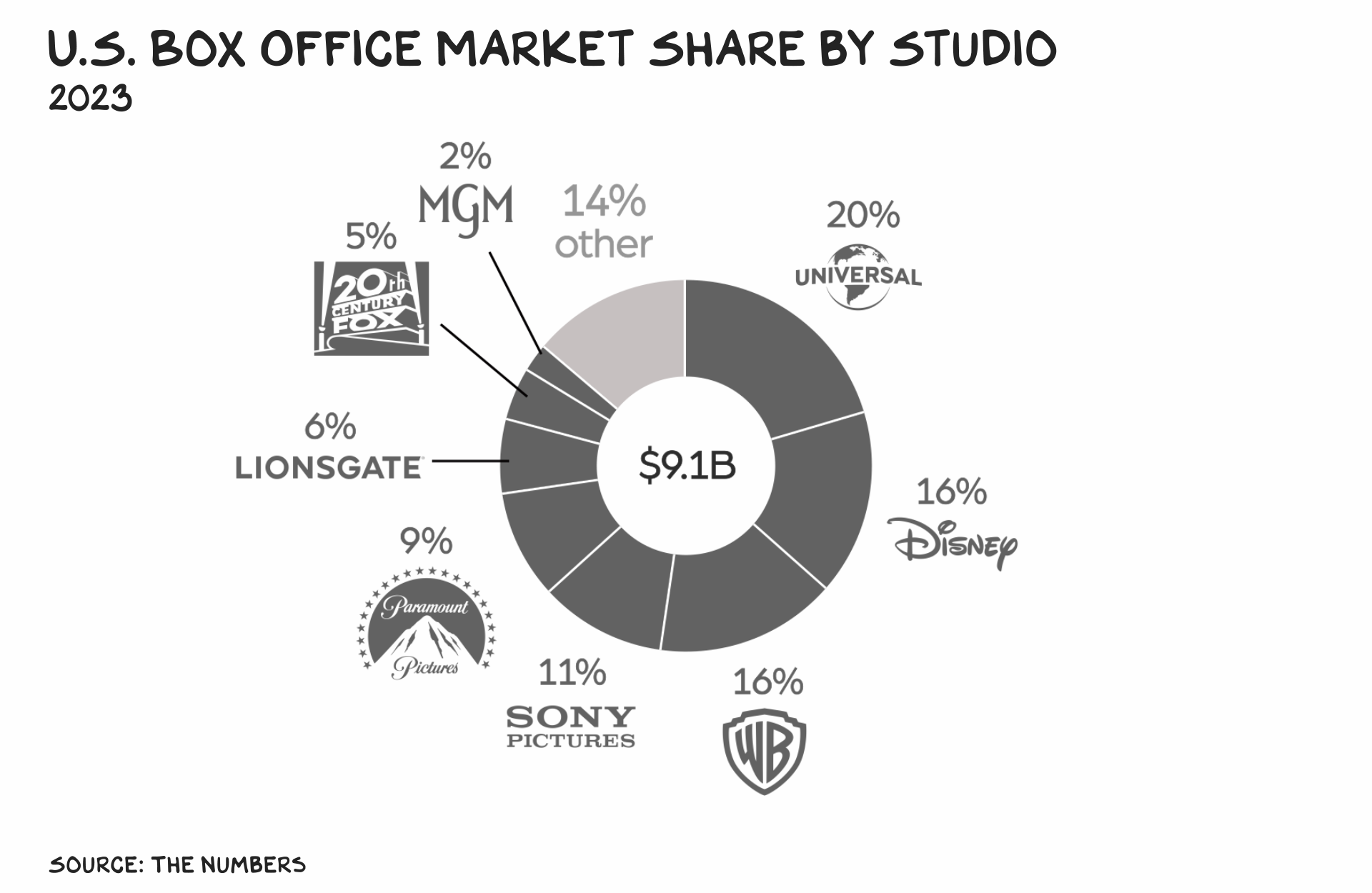 Storm clouds are gathering, again. The most obvious issue is the movie theater, which, despite analyst predictions of an explosive post-pandemic rebound, has underwhelmed. One out of every five moviegoers has disappeared since the pandemic, and, last year, U.S. box office revenue amounted to just $9 billion. Hollywood was happy to report that number was up 20% from 2022. The fine print: It’s down 20% from 2019. As in the 1960s, the battle in entertainment is between screens — the big screen is struggling to fight off challenges from TVs and now, phones.